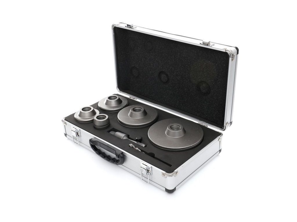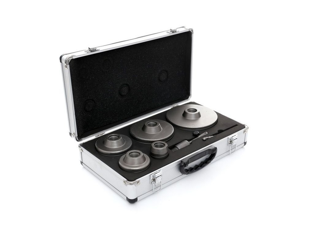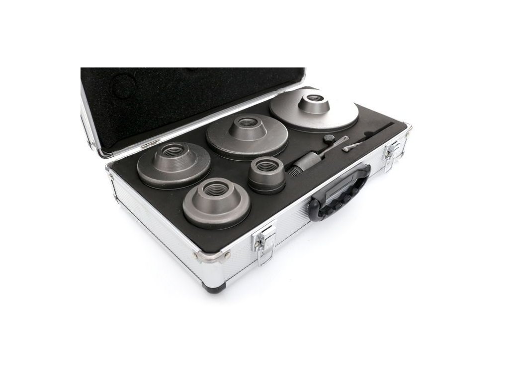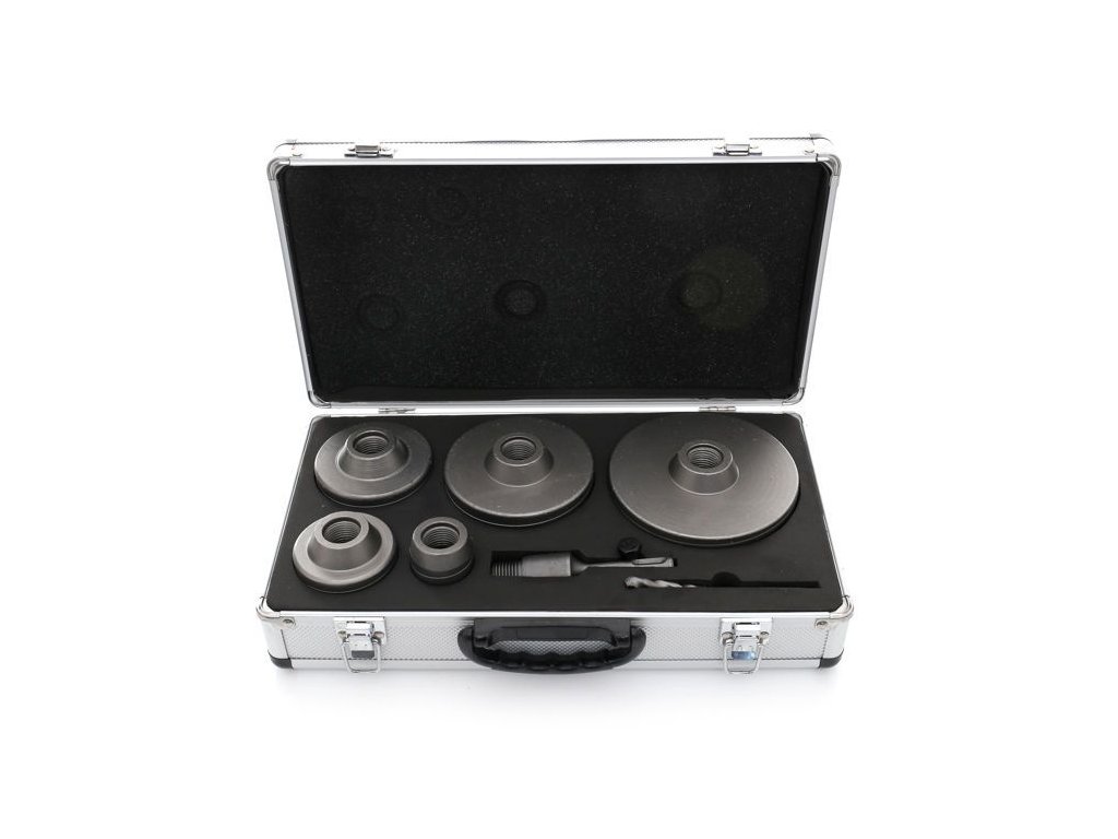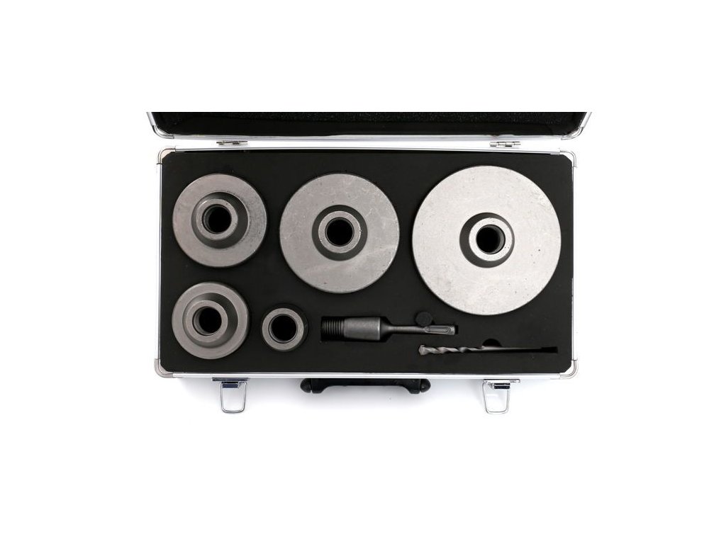 Setul KD10276 conține freze de perete în dimensiuni: 40, 65, 80, 100, 125 mm. Sistem de prindere SDS Plus 110mm. Burghiu ghid 110mm.