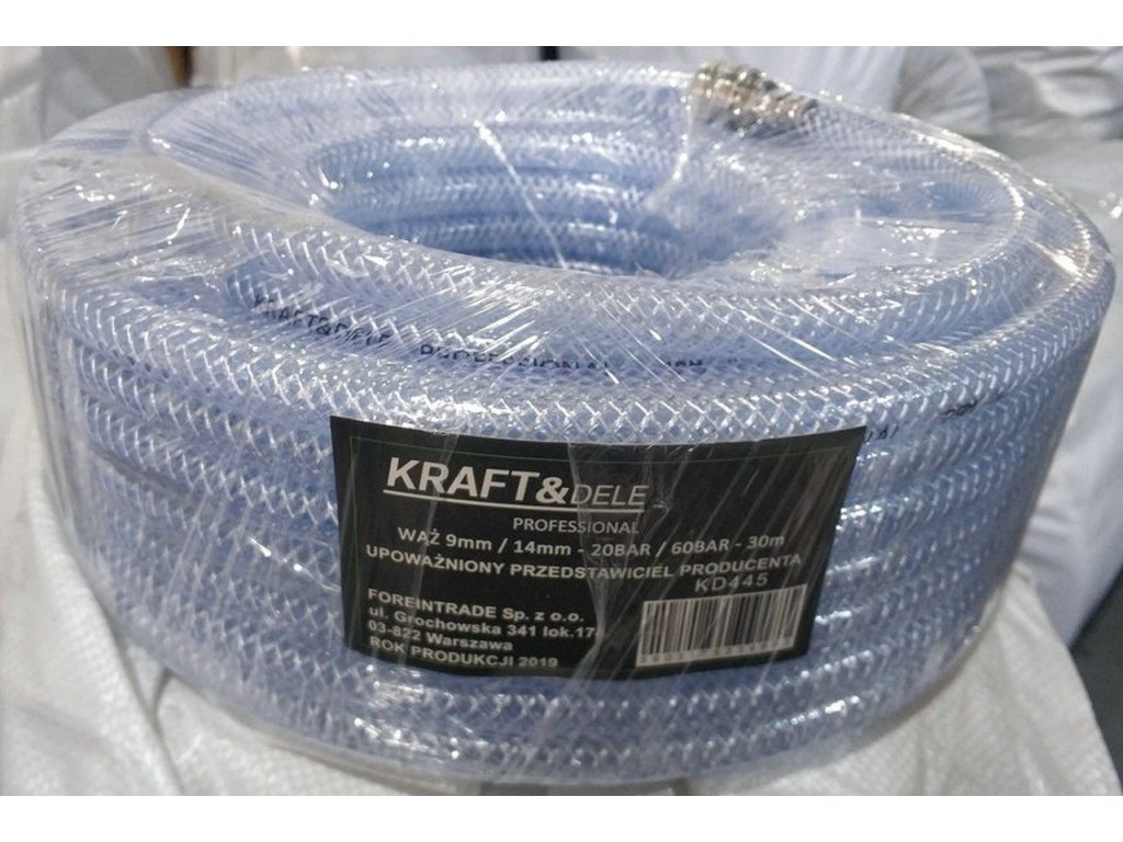 Furtun compresor întărit 14 mm 30 m KD445, de marcă Kraft&Dele, este fabricat din PVC flexibil, întărit cu plasă din poliester. O astfel de compoziție asigură un debit stabil de aer și lichide la presiune statică înaltă.