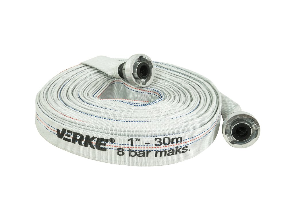 Acest furtun de incendiu este conceput pentru a fi utilizat atât cu pompe submersibile electrice, cât și pe benzină. Poate fi folosit pentru a îndepărta excesul de umiditate din încăperi și pentru a scurge apa curată sau murdară. Produsul este echipat cu conectori practici care permit o asamblare rapidă și fără probleme. Este realizat din bandă de poliester albă lipită de o căptușeală interioară neagră. Aceste furtunuri sunt foarte rezistente la schimbările de temperatură și funcționează foarte bine atunci când se lucrează în coturi.