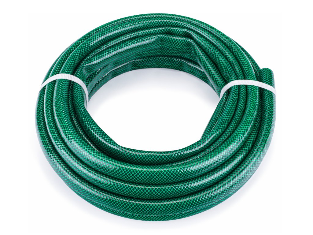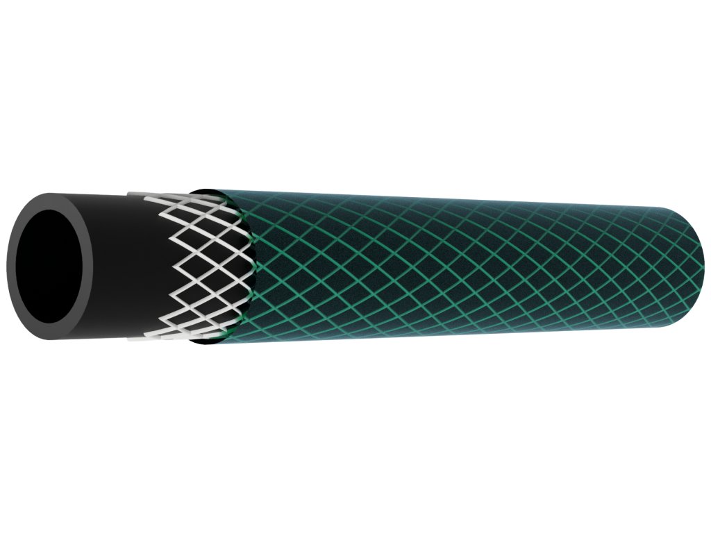 Furtunul este fabricat din PVC de primă clasă, rezistent la radiații UV, cu o armătură încrucișată din fibre sintetice și un strat exterior flexibil din PVC.