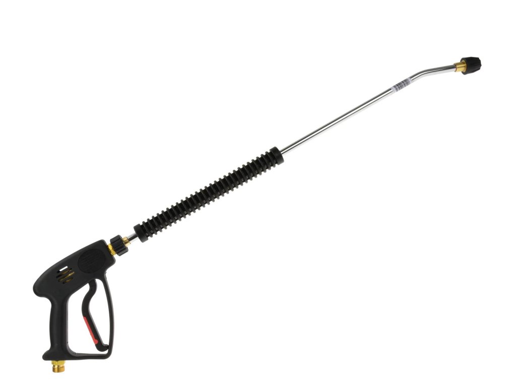 Este echipat cu un filet de conectare M22x1.5 pe partea duzei și a furtunului de presiune, asigurând o compatibilitate largă cu majoritatea accesoriilor marca KARCHER. Forma ergonomică a mânerului asigură confort în timpul utilizării, iar pistolul are un sistem de blocare care previne apăsarea accidentală a trăgaciului și pornirea dispozitivului.