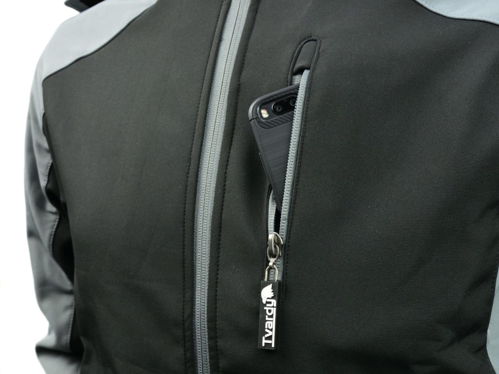 Geaca are trei buzunare: un buzunar la piept (numit și napoleon) cu închidere cu fermoar, două buzunare laterale clasice cu închidere cu fermoar și o glugă cu prindere pe fermoar. Gluga este echipată cu două șnururi de strângere care pot fi închise în față cu scai. Marginea elastică de la baza gecii permite ajustarea la corp și împiedică pătrunderea vântului. Mânecile sunt reglabile cu ajutorul scaiului.