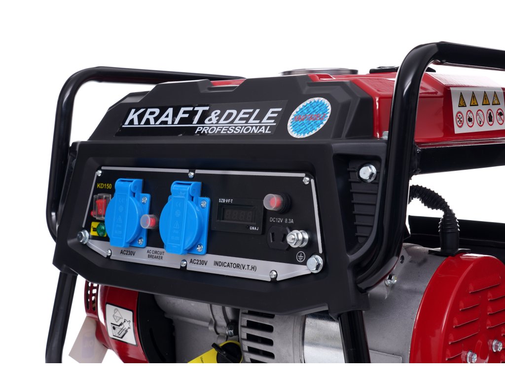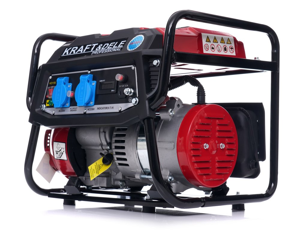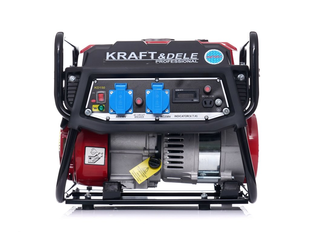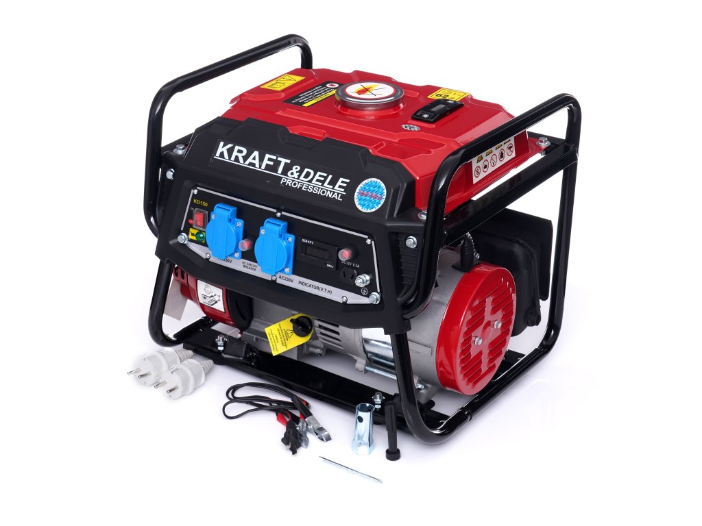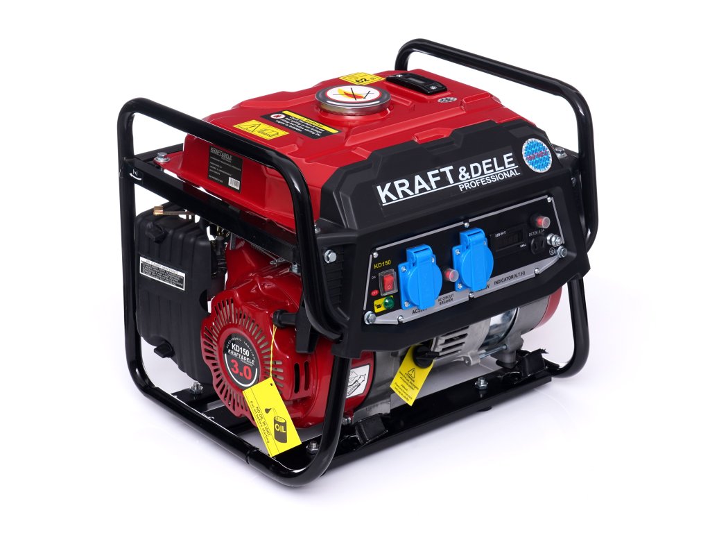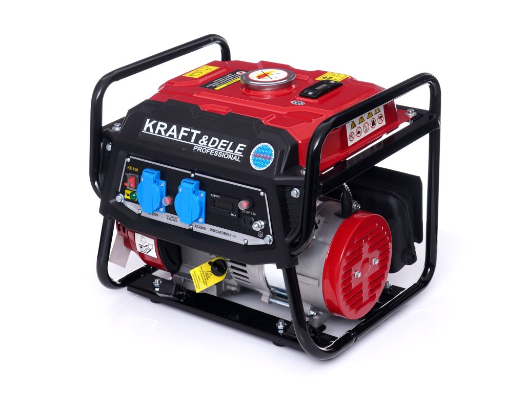 Generator curent electric 1500 W 12 V/230 V KD150, marca Kraft&Dele, este destinat producerii curentului alternativ 220V-230V prin intermediul unui motor cu ardere internă, de origine japoneză, OHV, în patru timpi, cu puterea de 3 CP și cu puterea maximă a generatorului de 1500 W.