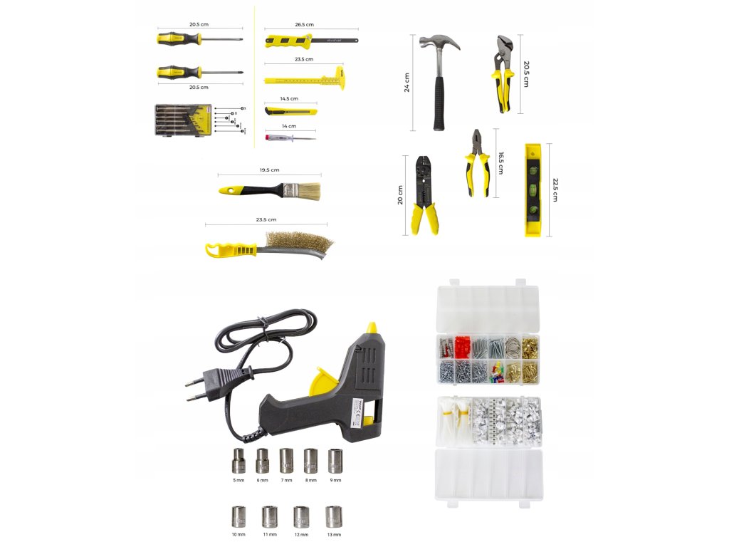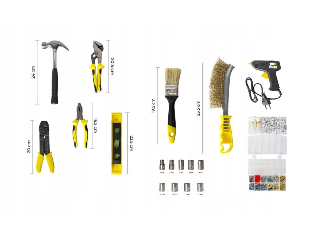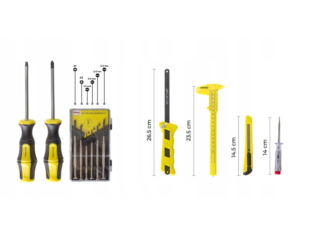 Setul WMC 1001 este conceput pentru a acoperi o gamă largă de reparații și instalări. Ideal ca echipament complet pentru atelier sau ca un cadou pentru un meșter amator. Datorită cutiei robuste de scule, sculele sunt ușor de transportat și aveți întotdeauna totul la îndemână.