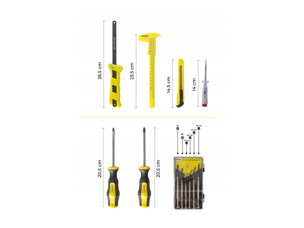 Gama WMC Tools cuprinde șurubelnițe, clești, chei, burghie, pânze, polizoare, ferăstraie și seturi complete de scule, realizate din materiale rezistente la uzură și concepute pentru o utilizare confortabilă și sigură. Fiecare instrument este proiectat pentru a oferi precizie și eficiență, indiferent de complexitatea lucrării.