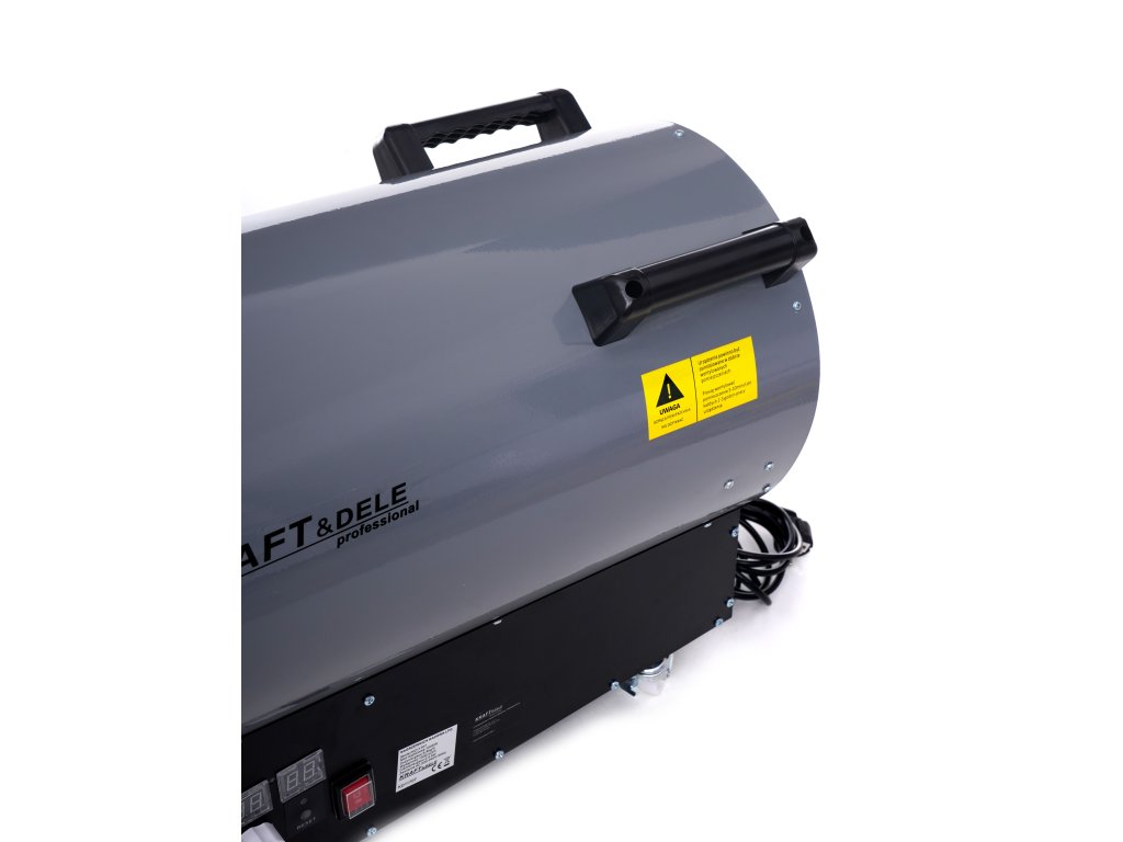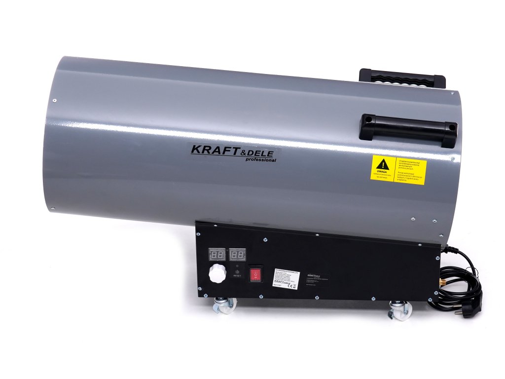 Încălzitorul pe gaz marca Kraft&Dele model KD11707 cu putere de 100 KW este destinat utilizării cu propan-butan (LPG). Acest încălzitor este dotat cu termostat încorporat cu temperatură reglabilă. Funcționează automat în funcție de setările de temperatură.