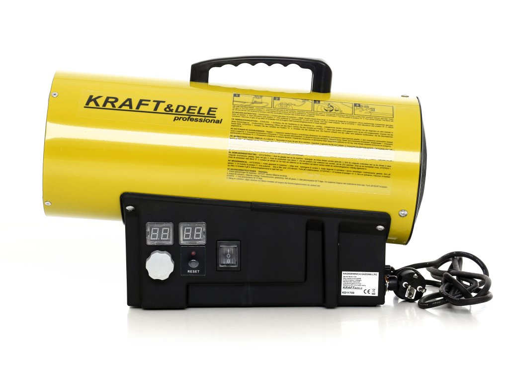 Încălzitorul marca Kraft&Dele model KD11700 cu puterea de 25 KW pe propan-butan (LPG). Încălzitorul este dotat cu termostat pentru reglarea temperaturii și ecran digital, oferind posibilitatea de a seta simplu temperatura dorită. Încălzitorul funcționează automat în funcție de setările termostatului.