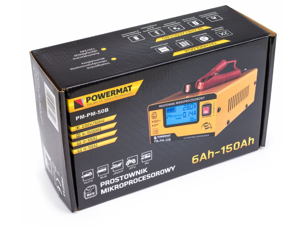 Redresorul PM-PM-50B de la Powermat este o revoluție pe piață, fiind primul încărcător echipat cu control microprocesor și tehnologie PWM, care permite o încărcare de calitate pentru bateriile de 12V și 24V, alegând optim parametrii pentru regenerarea bateriilor descărcate.