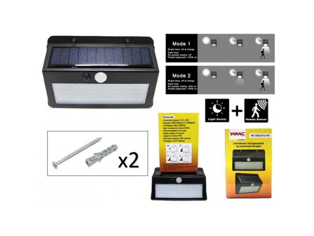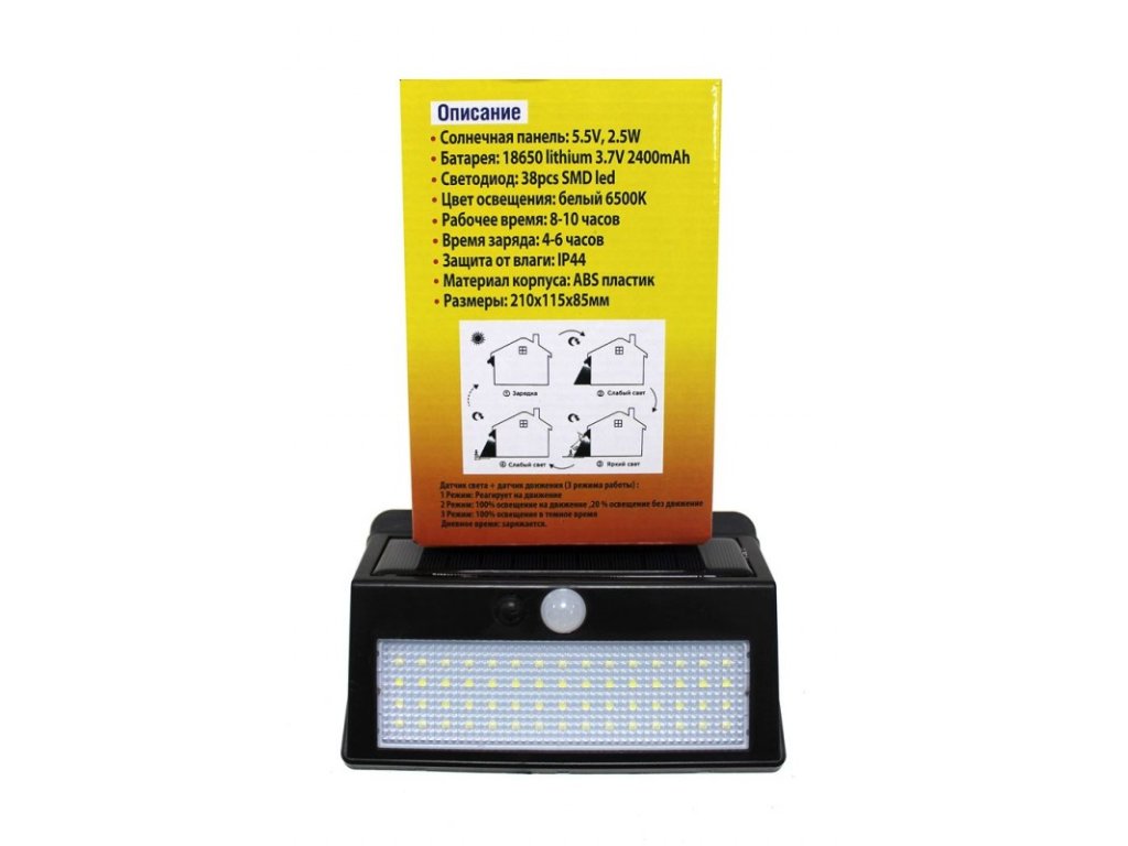 Lampă solară cu 38 LED-uri și senzor de mișcare și crepuscul