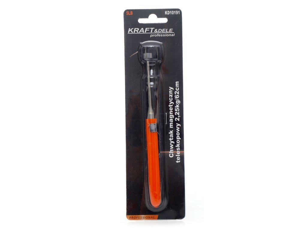 Magnetul telescopic de la Kraft&Dele este un instrument util în orice atelier, permițând ridicarea diferitelor elemente metalice (șuruburi, piulițe, chei etc.) din locuri greu accesibile. Dispune de un magnet puternic care permite ridicarea unui obiect cu greutatea de până la 2 kg.
