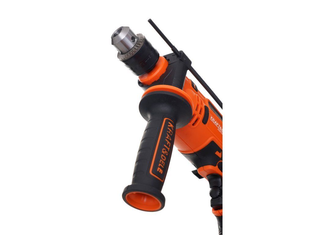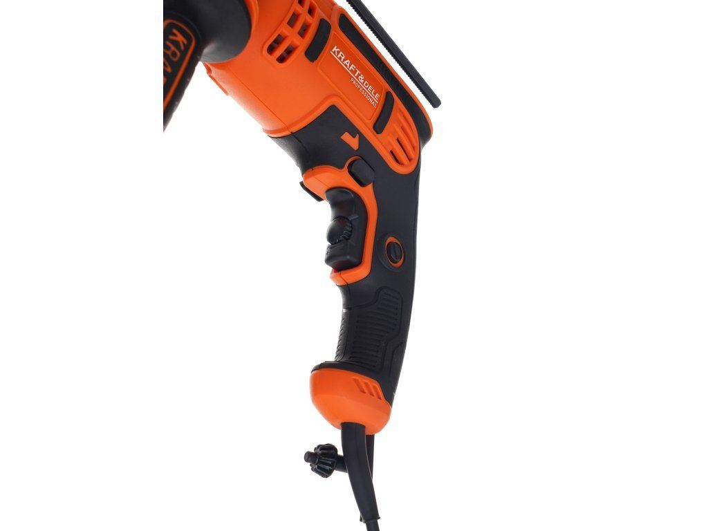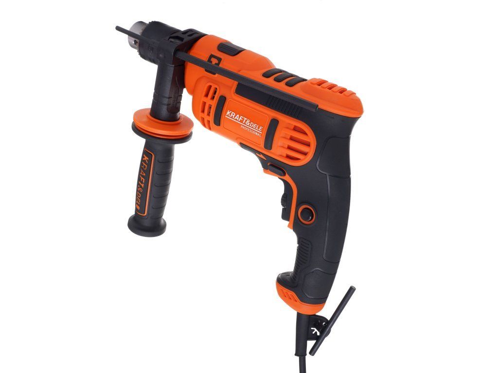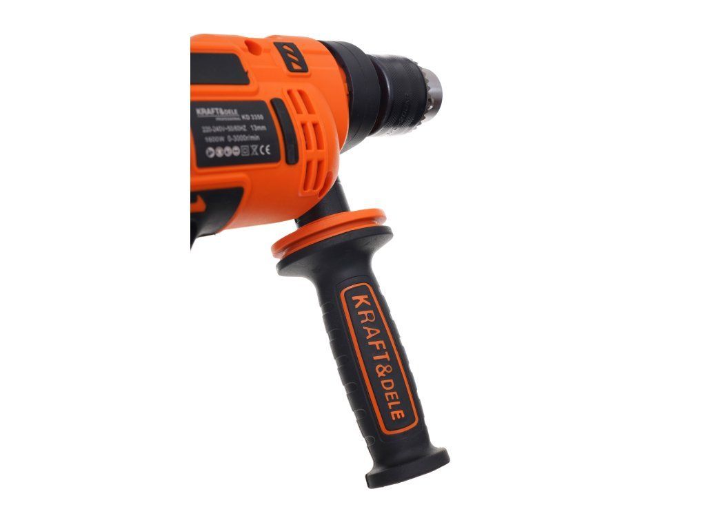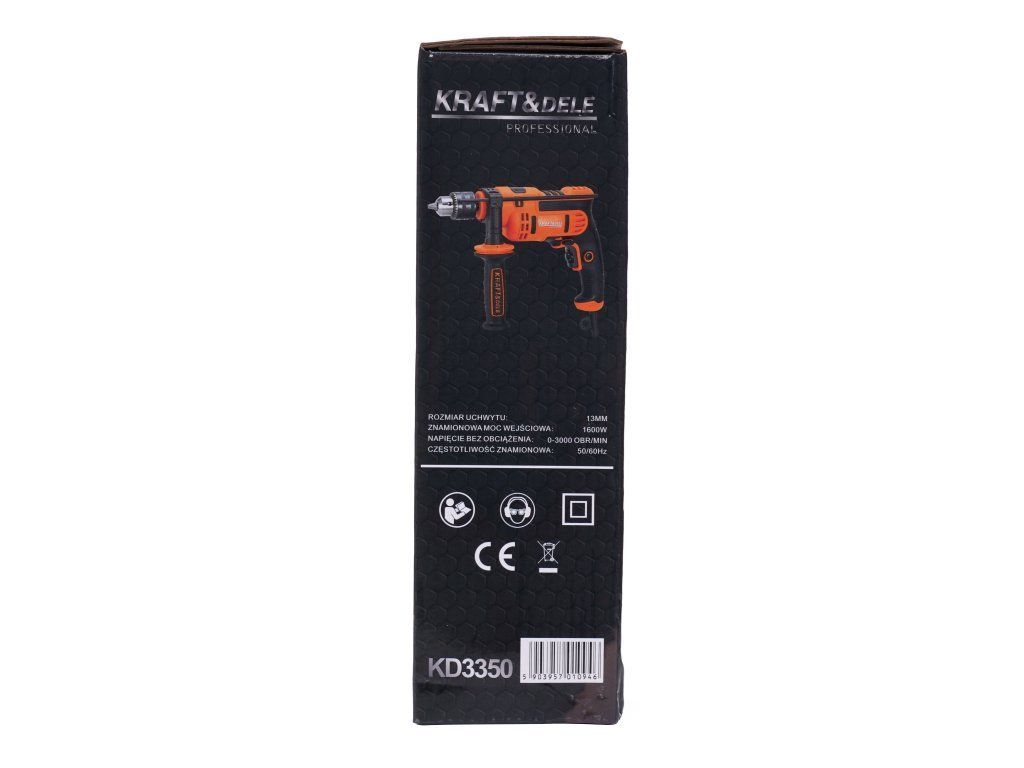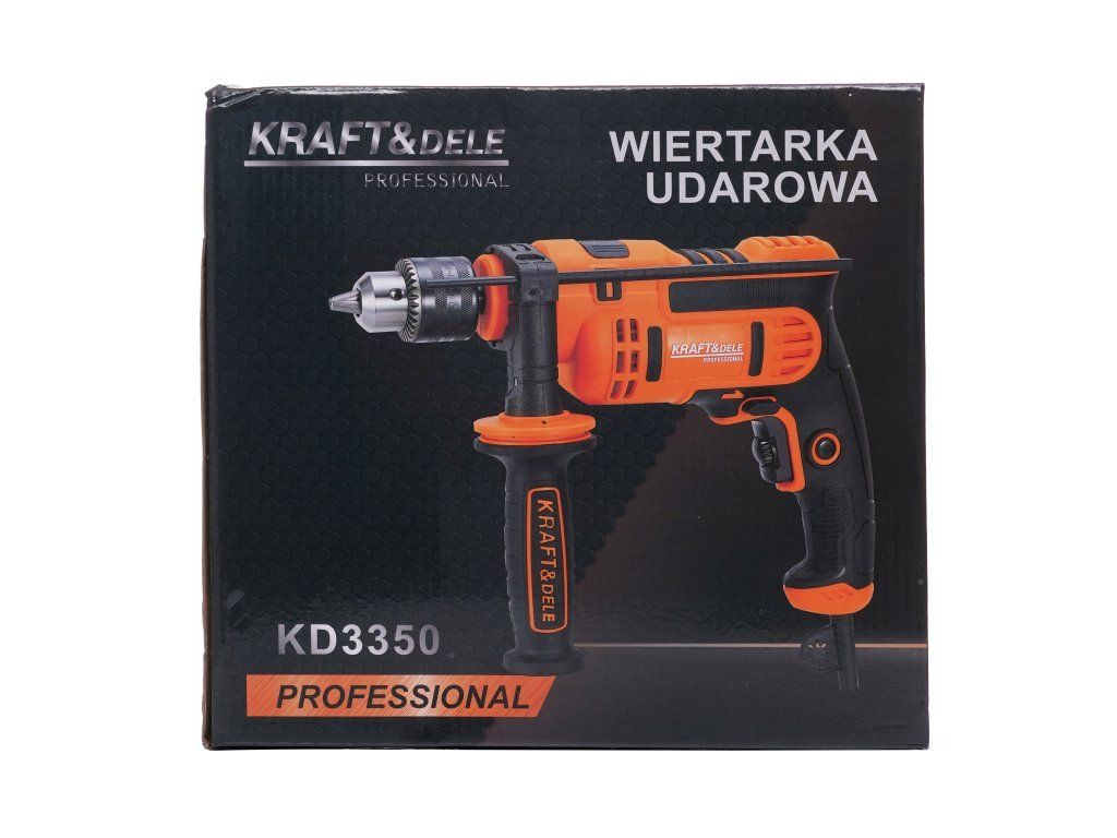 Bormașină cu percuție Kraft&Dele KD3350, cu putere de 1600W, este destinată găuririi cu percuție în cărămizi, beton și piatră, precum și găuririi în metal, ceramică, lemn și plastic. Mânerul principal este realizat dintr-un material special antiderapant pentru o prindere confortabilă a uneltei în mână. Este o versiune echipată cu mâner lateral suplimentar. Capul este din metal.