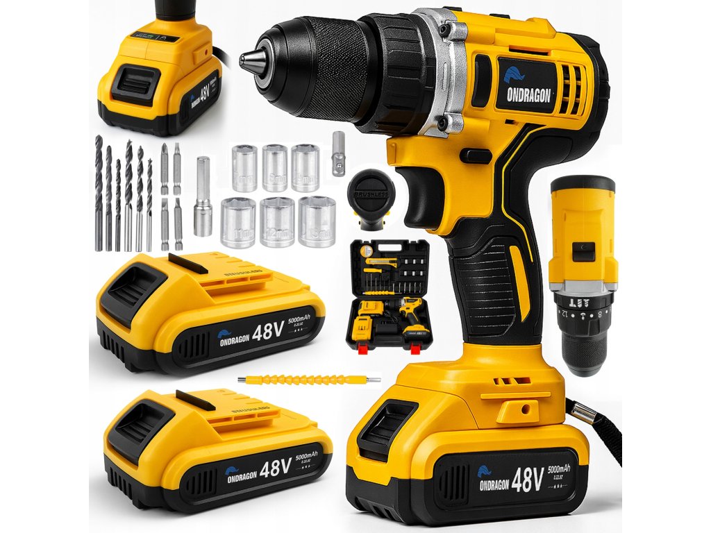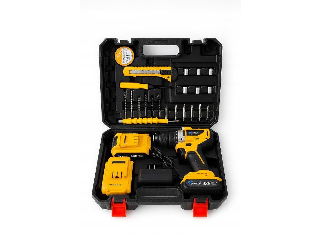 Mașină de găurit cu impact fără perii, fără fir, 48V, 2× 5.0Ah, cu accesorii