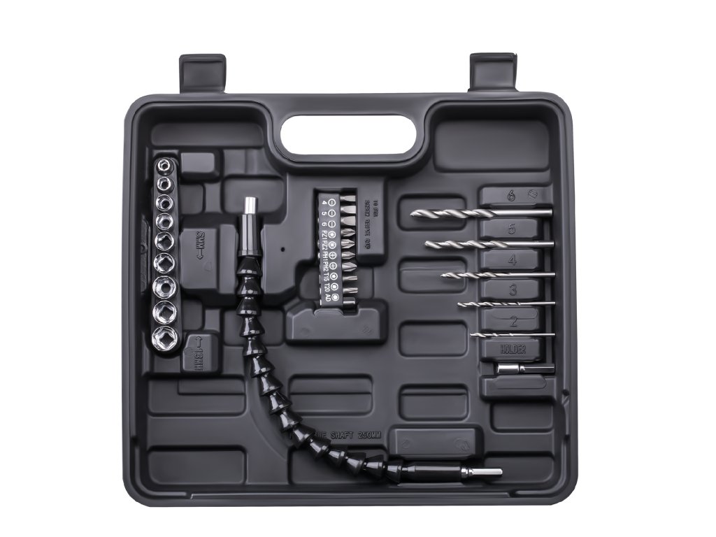 Poate fi folosit ca o burghiu sau șurubelniță completă.