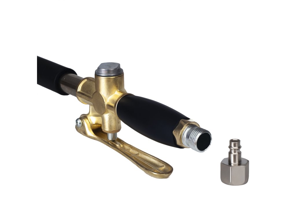 Această duză este semnificativ mai eficientă decât variantele din plastic cu clemă de fixare, care sunt greu de înlocuit în timpul lucrului. Duzele metalice asigură manipulare confortabilă și durată lungă de viață.