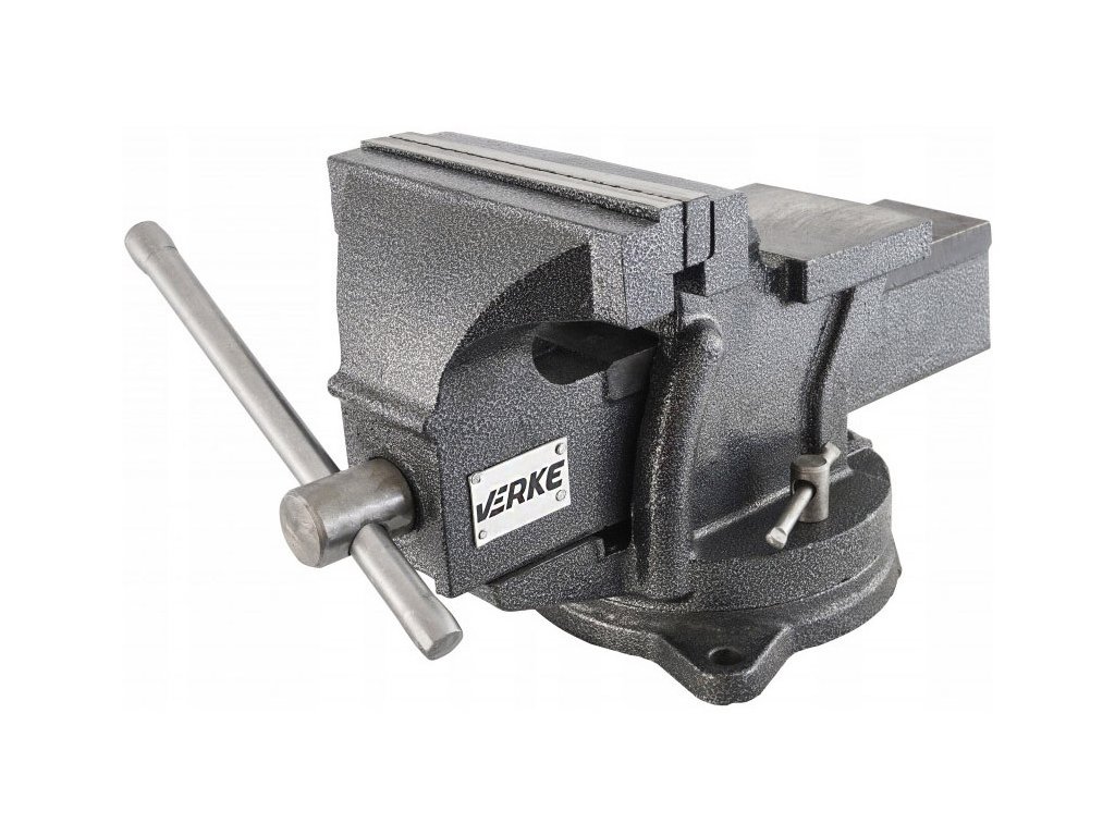 Viciu profesional de la VERKE . Conceput pentru ateliere de lăcătuși solicitante, servicii mecanice generale și auto, realizate cu precizie din cele mai bune materiale, extrem de versatile datorită capacității de rotație. Corpul menghinului este din fontă cenușie, fălcile înlocuibile sunt de 150 mm iar nicovala este din oțel călit. Menghina este montata pe o baza rotativa. Suprafața este acoperită cu lac negru ciocănit .