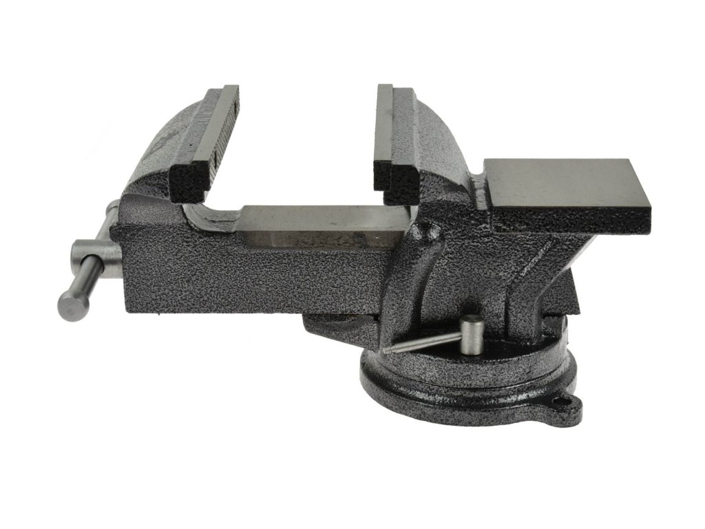 Menghină rotativă 150mm (6") tip hobby G01032 este fabricată din materiale de înaltă calitate, care garantează o durabilitate și rezistență îndelungată. Falțurile de oțel ale menghinei sunt prevăzute cu caneluri anti-alunecare în cruce și sunt călite pentru o rezistență sporită.