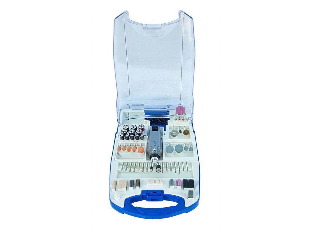 Mini mașina de șlefuit multifuncțională cu o putere de 350W și un control al vitezei de 8000-16000 rpm este o unealtă ideală pentru șlefuire , frezare , lustruire și găurire . Construcția ergonomică și designul compact garantează confort în timpul lucrului. Contine 110 accesorii care extind posibilitatile de utilizare a acestui instrument universal, nu numai pentru lemn, plastic, ci si metal sau ceramica. Pachetul include și o husă practică de transport pentru depozitare și portabilitate ușoară.