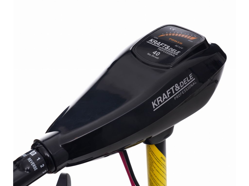 Motor electric model KD5306 al mărcii poloneze Kraft&Dele cu forța de tracțiune 40lbs pentru bărci și pontoane. Dispozitivul are dimensiuni reduse, ceea ce este un avantaj pentru pontoanele mici. Este ideal pentru pescuit și alte activități de agrement.