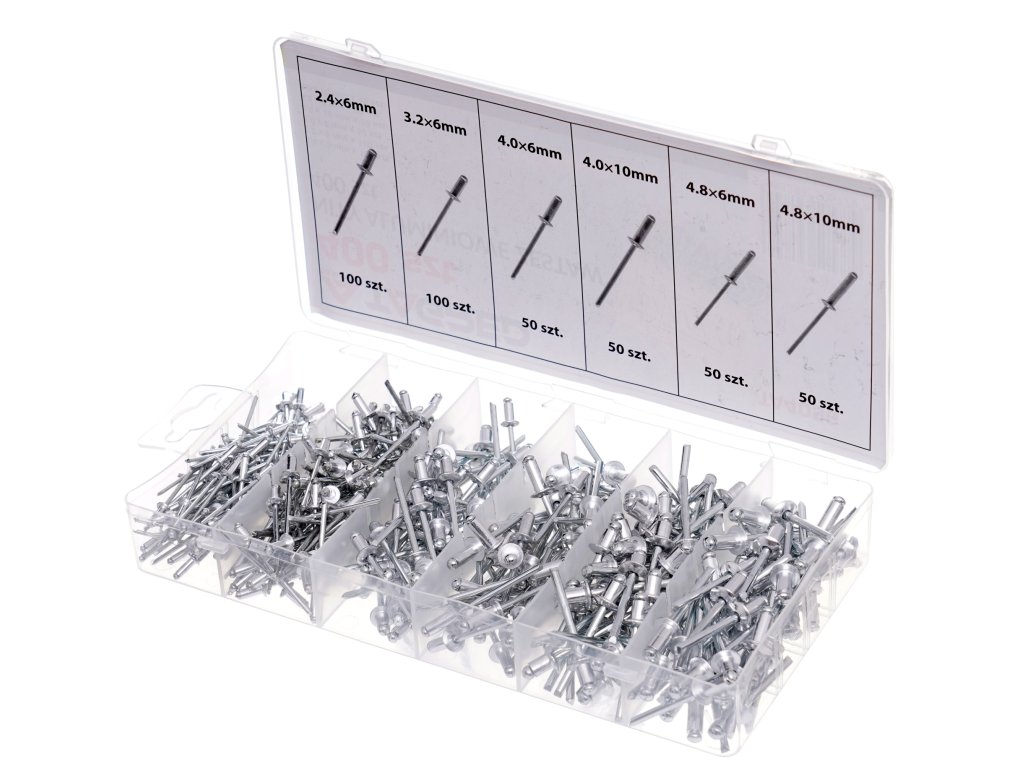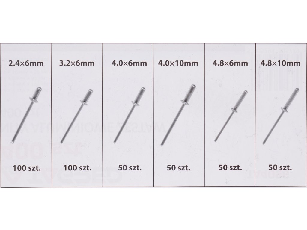 Nituri din aluminiu rupți, set 400 buc., reprezintă soluția perfectă pentru toate nevoile dvs. de fixare. Acest set include cele mai populare dimensiuni 2,4 mm, 3,2 mm, 4,0 mm și 4,8 mm, astfel încât să puteți alege cu ușurință dimensiunea potrivită pentru fiecare proiect.