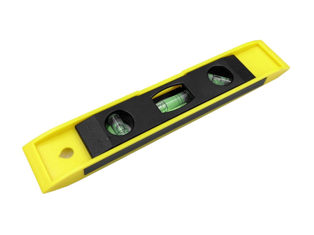 Nivelă cu bulă de aer din PVC 225 mm cu magnet, 3 fiole