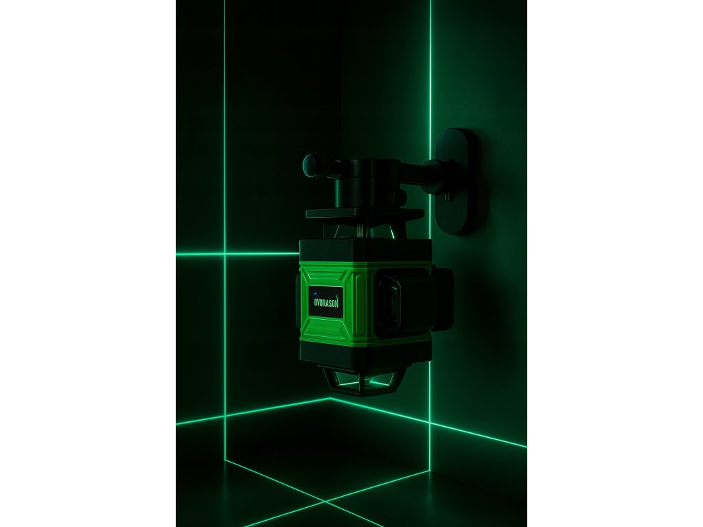 Nivela laser profesională Ondragon cu tehnologie 4D și laser verde asigură o precizie perfectă în timpul fiecărei asamblări, construcții sau renovări. Oferă 16 linii laser - 8 orizontale și 8 verticale - care acoperă întregul spațiu pe o rază de 360°. Datorită funcției de autonivelare , posibilității de a utiliza modul manual pentru linii oblice și rezistenței la praf și apă (IP54), este instrumentul ideal pentru condiții dificile. Două baterii puternice permit până la 8 ore de funcționare, în timp ce o gamă largă de accesorii, inclusiv un trepied, o bază rotativă, ochelari și o telecomandă, asigură flexibilitate și confort deplin.