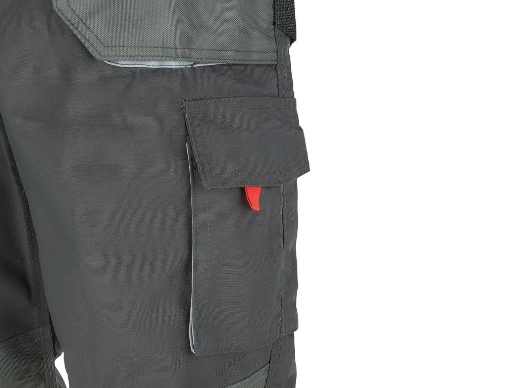 - Material întărit la genunchi, bretea și buzunare