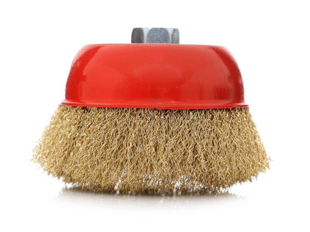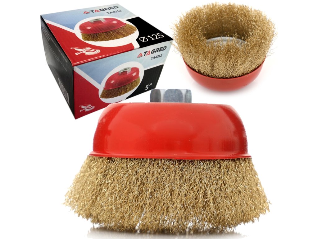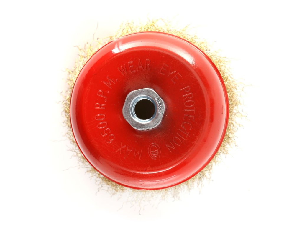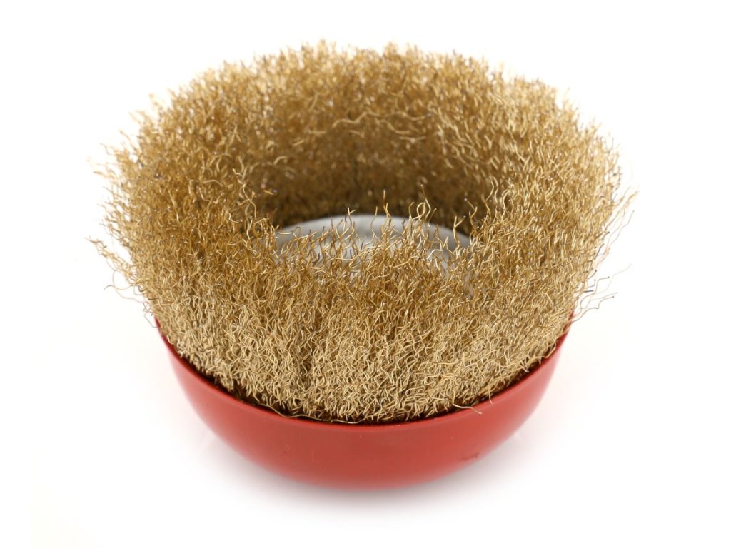 Perie de sârmă profesională de înaltă calitate realizată din sârmă ondulată de alamă, care asigură o durată lungă de utilizare și o curățare eficientă. Această perie este proiectată cu un filet interior M14, ceea ce permite conectarea sa ușoară la polizoarele unghiulare.