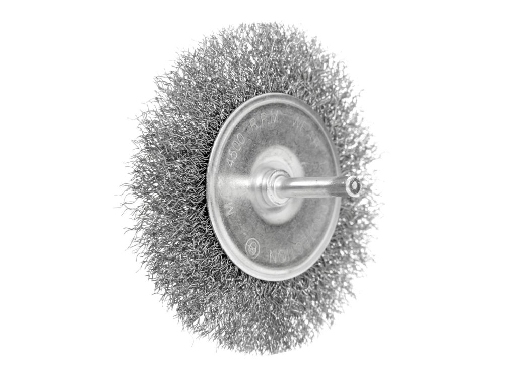 Peria disc de sârmă de vârf, cu ax este fabricată din fire de oțel ondulat și este ajutorul ideal pentru lucrări de curățare grele și ușoare.