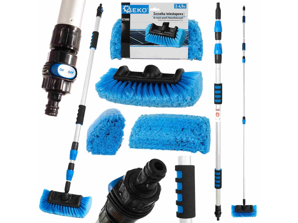 Fără griji, puteți ajunge în toate colțurile datorită extensiei telescopice de 2 până la 4,9 metri. Perii moi și deși asigură că panourile dvs. rămân fără zgârieturi sau deteriorări, în timp ce îndepărtează eficient murdăria și praful.