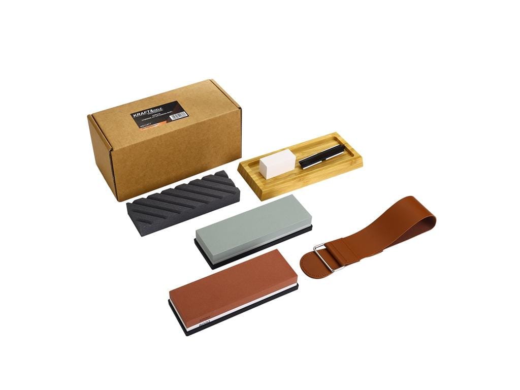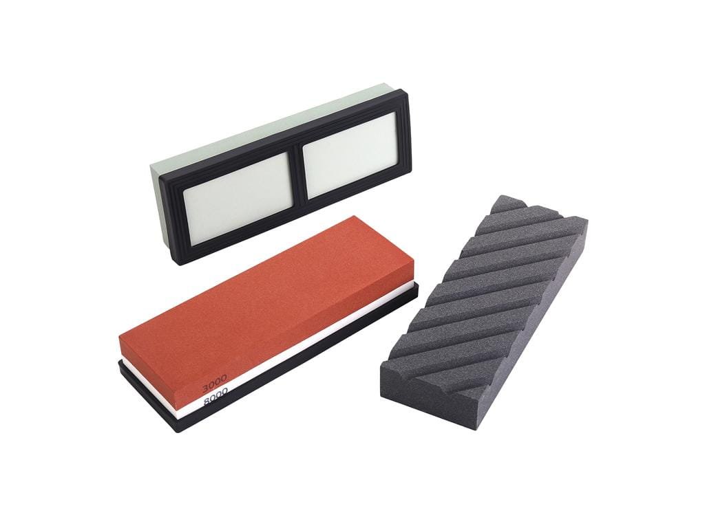 - ✅ Setul conține pietre cu granulații diferite pentru atât ascuțire brută, cât și finisare