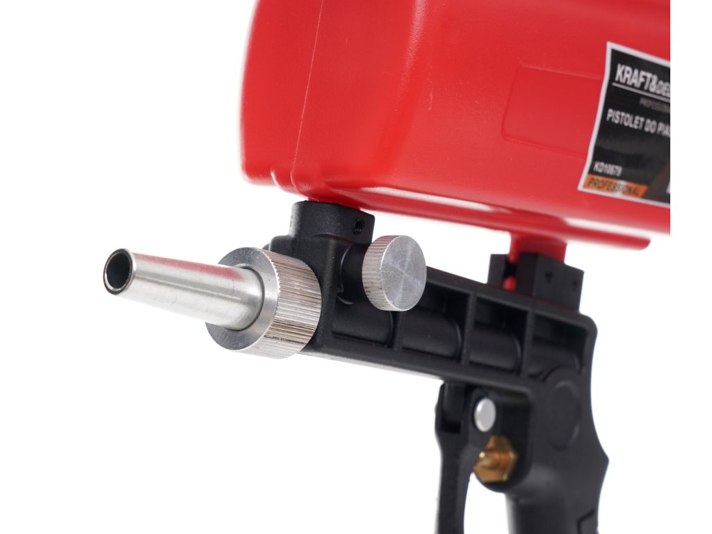 Pistolul de sablare, model KD10679, este ideal pentru îndepărtarea ruginei, decojirea vopselei și alte activități de curățare. Corpul pistolului este fabricat din aluminiu, asigurând astfel ușurință, portabilitate și manevrare facilă.