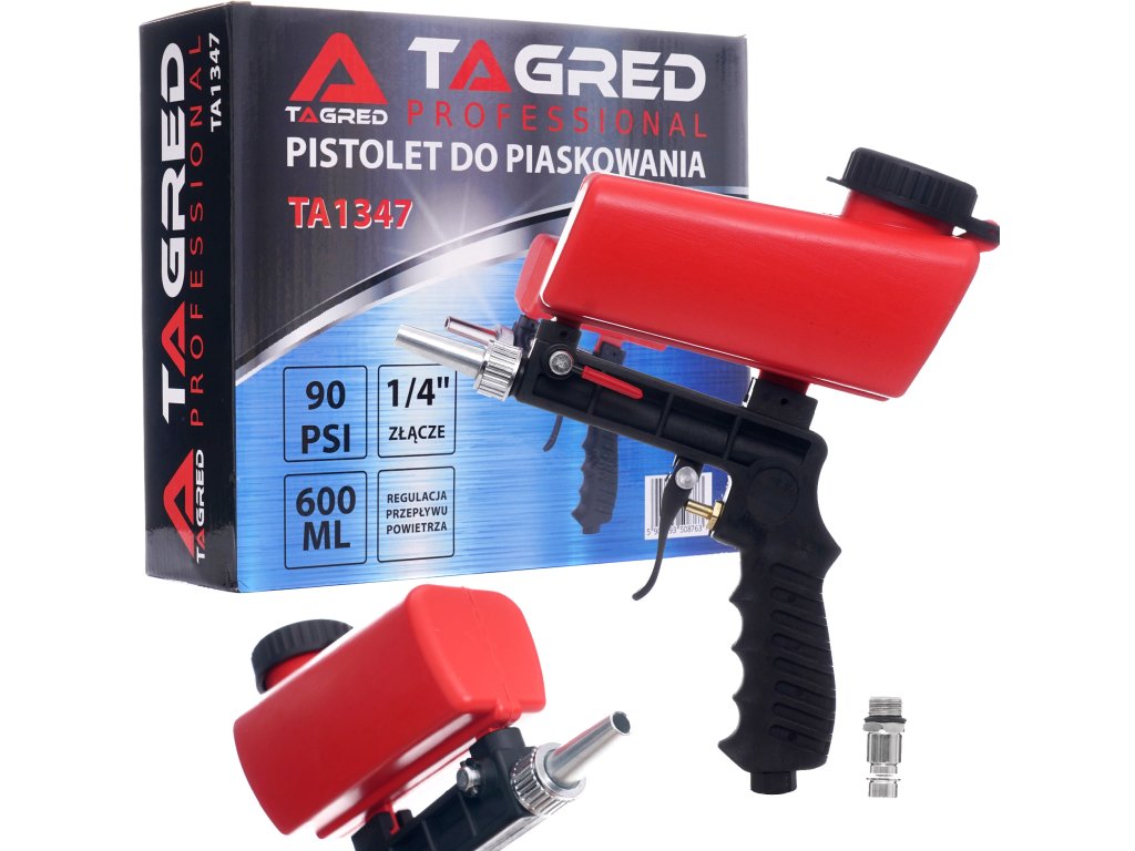 Rezervorul superior asigură presărarea automată a nisipului și necesită, de asemenea, un volum mai mic de aer decât pistoalele de sablare tradiționale, oferind alte avantaje în utilizare.