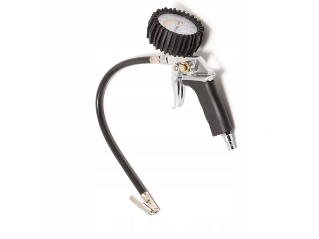Pistolul pneumatic este utilizat pentru umflarea roților cu valve auto standard. Este echipat cu un cuplaj rapid standard mascul utilizat la sculele pneumatice europene. Manometrul este protejat de un cauciuc zimțat care îl protejează de deteriorare dacă este plasat neglijent.