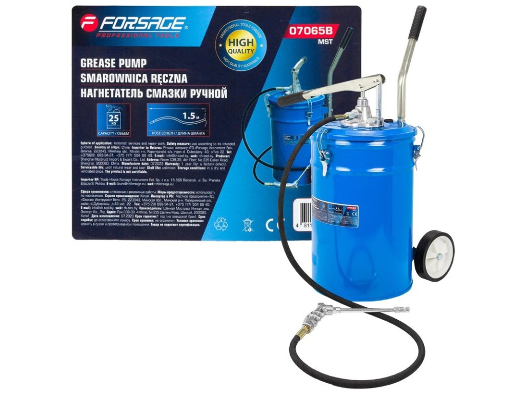 O pompă de unsoare manuală portabilă este un dispozitiv mobil pe un șasiu cu o pompă manuală.
