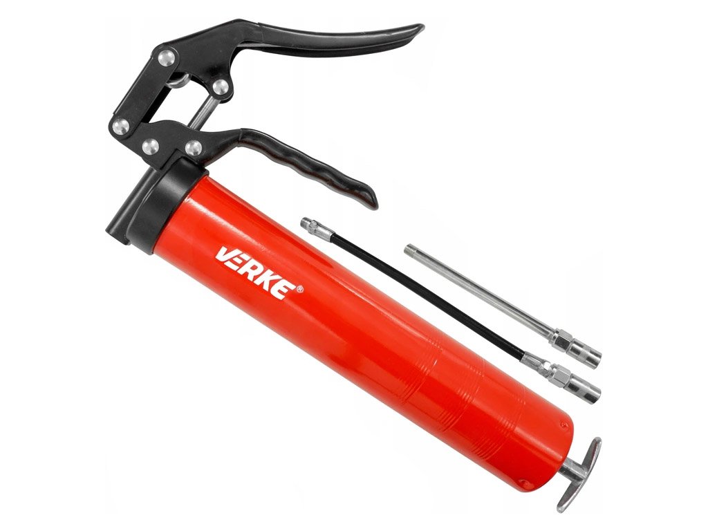 Lubrifiatorul VERKE este un dispozitiv conceput pentru lubrifierea sub presiune a componentelor mecanice precum arbori, bolțuri, rulmenți și îmbinări. Este realizat dintr-un cilindru de otel cu o capacitate de 500 ml , in care actioneaza un piston actionat manual. Pistonul este realizat din cauciuc de înaltă calitate, rezistent la expunerea pe termen lung la lubrifianți și uleiuri.
