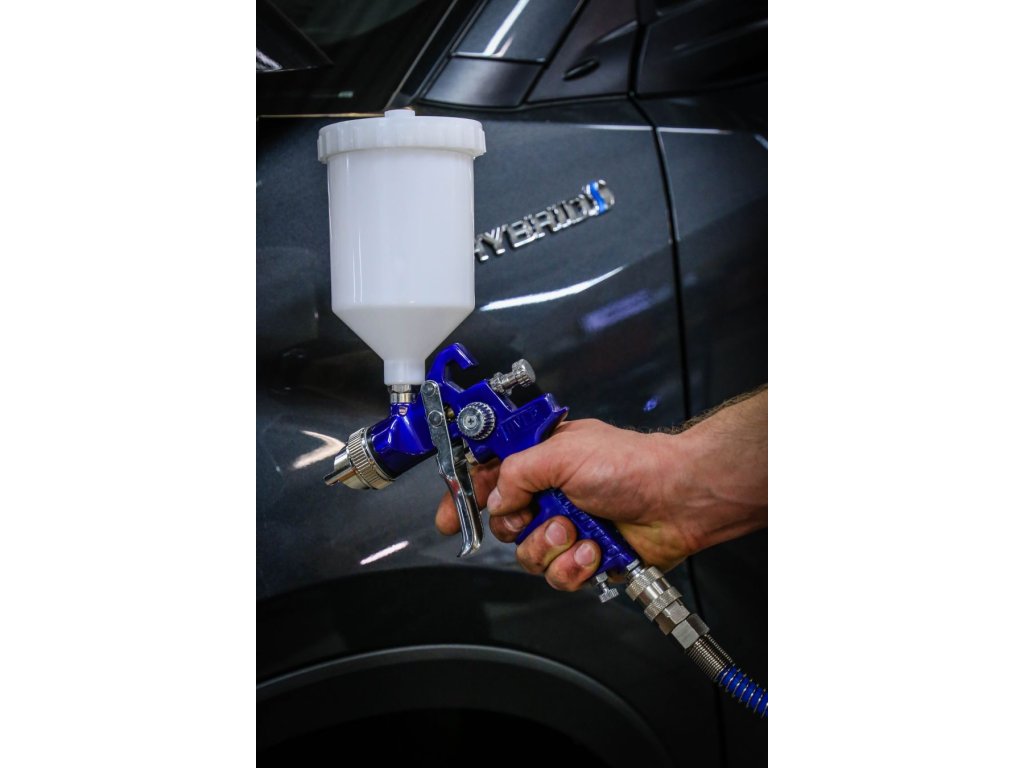 - Fabricat cu tehnologia HVLP - optimizat pentru presiune scăzută, permițând economisirea de până la 30% din vopsea.