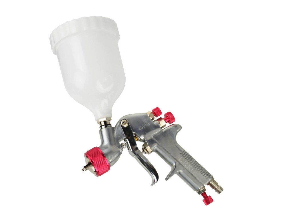 Pistol de vopsit HVLP profesional GEKO 4001 G01181 este fabricat din materiale de cea mai bună calitate și este destinat pentru vopsirea de precizie. Pistolul este alimentat cu aer comprimat, care curge din compresor în rezervorul cu vopsea și apoi în duza pistolului. Presiunea „împinge” lichidul din rezervor iar particulele dispersate de vopsea sunt apoi pulverizate prin duză pe suprafața vopsită.