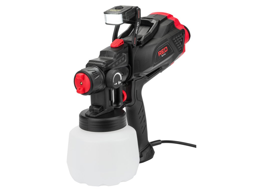 Pistolul de vopsit RED TECHNIC RTPDM0020 tip HVLP funcționează pe principiul atomizării cu un curent de aer în interiorul rezervorului de vopsea sau alt lichid. Termenul HVLP înseamnă volum mare și presiune scăzută. Aerul comprimat furnizat pistolului de către compresor este direcționat către duza și rezervorul cu vopsea. Presiunea determină extruderea lichidului din rezervor. Particulele de vopsea atomizată sunt expulzate prin duză cu un strat de aer.