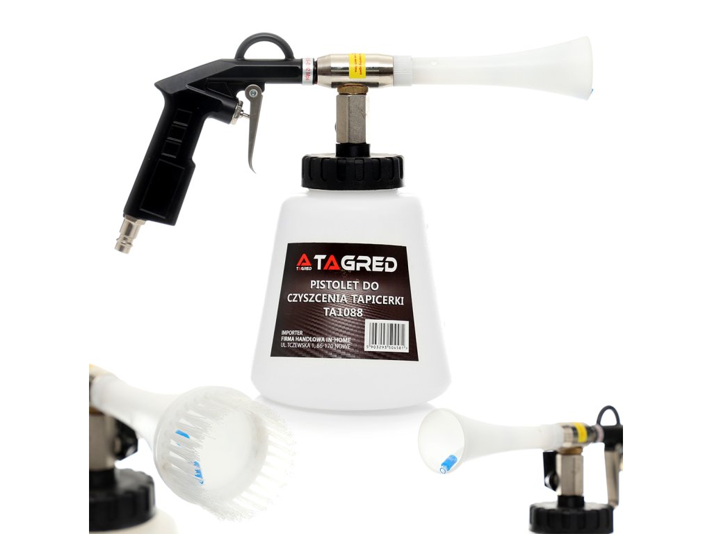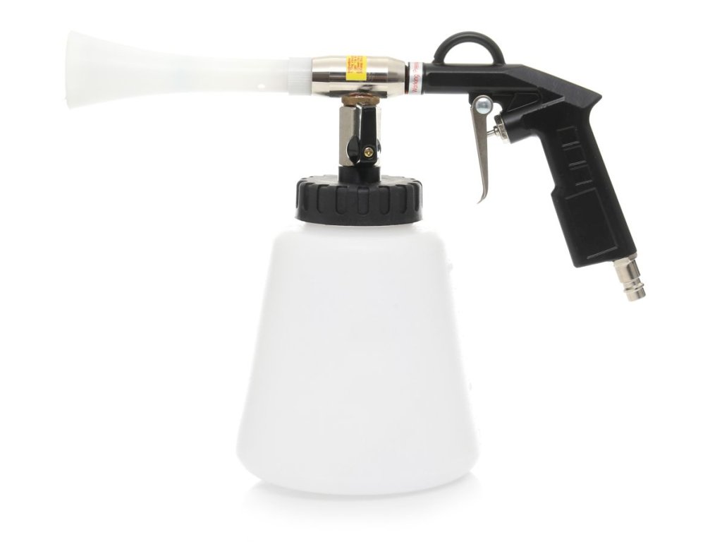 Datorită duzei special formate, cu un nucleu rotativ, pistolul de curățare utilizează aer comprimat pentru a crea o soluție de curățare spumoasă, care curăță eficient toate elementele, umedindu-le doar ușor. Este un dispozitiv extrem de eficient care consumă o cantitate minimă de apă și soluții de curățare, și ajunge și în cele mai inaccesibile locuri, unde un burete sau o cârpă obișnuită nu reușesc să ajungă!