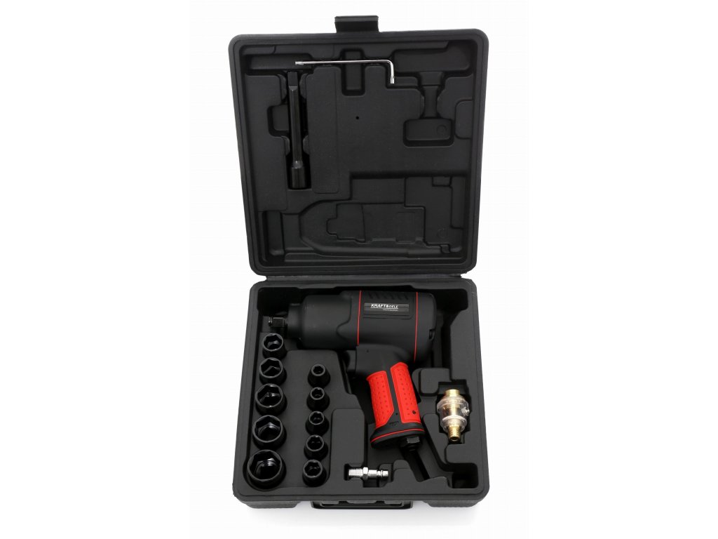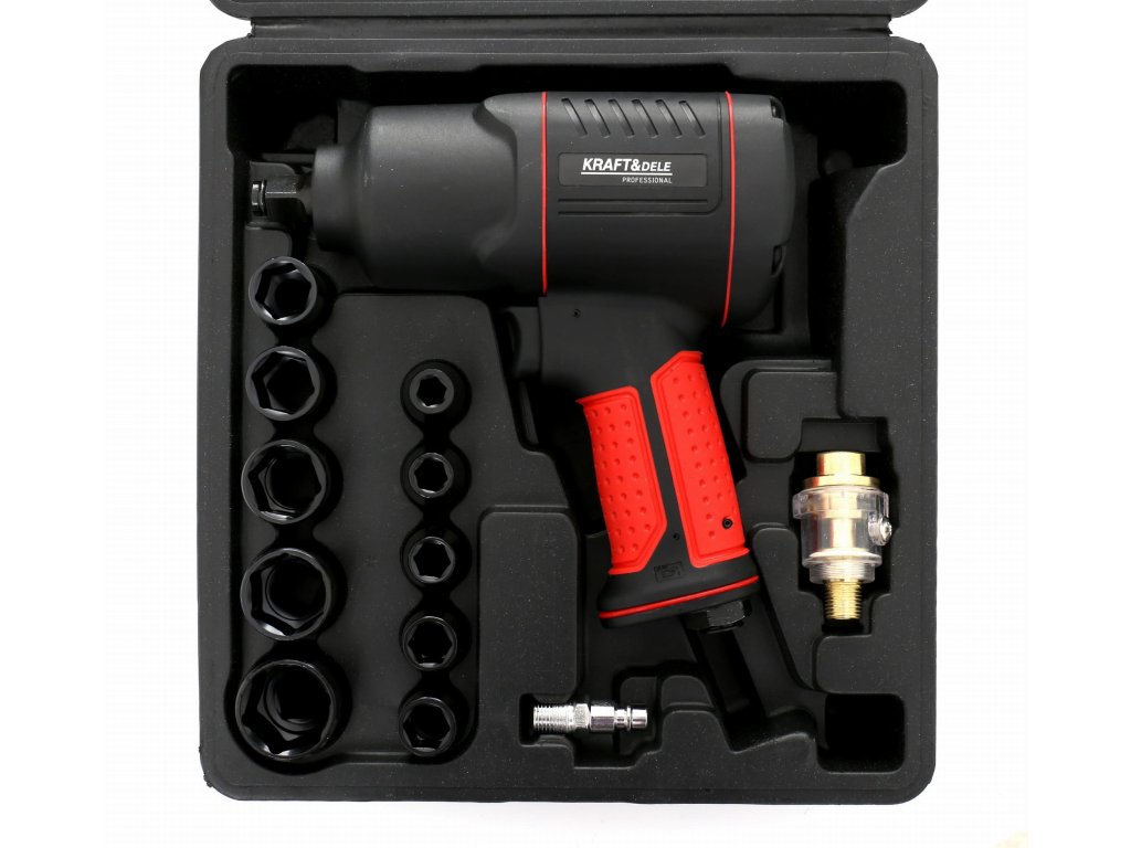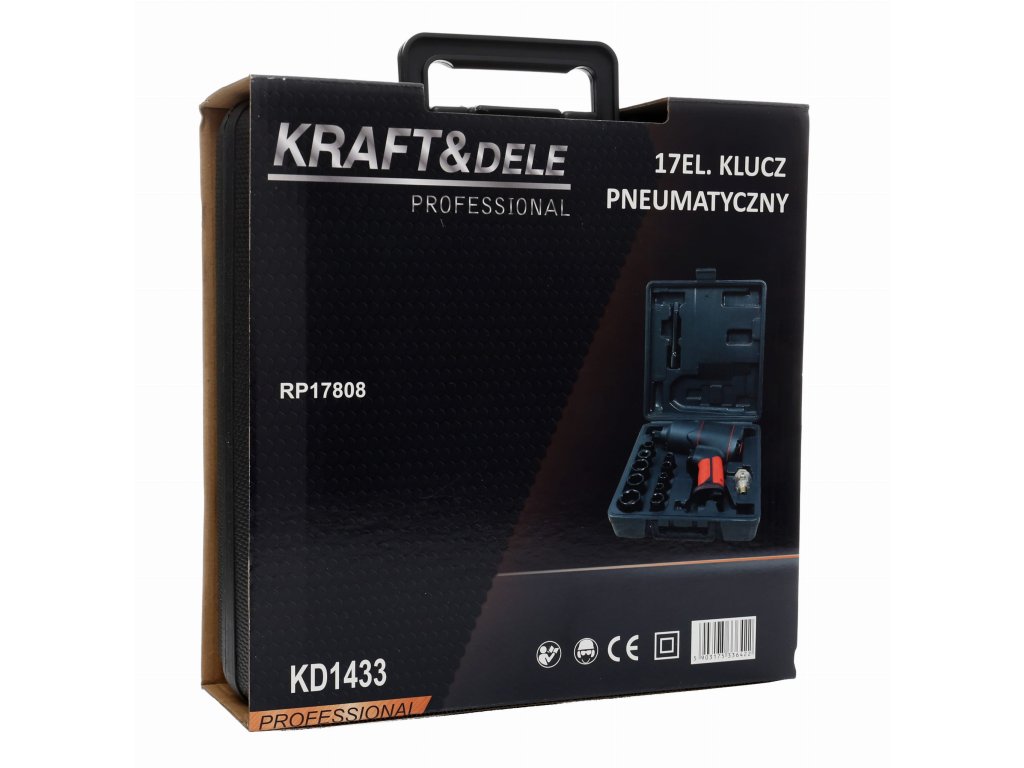 Cheie clichet pneumatică 1/2" 1900 Nm, 17 piese KD1433 — Un instrument robust și puternic de la marca poloneză Kraft & Dele, model KD1433, cu cuplu de 1900 Nm, va facilita deblocarea chiar și a celor mai strânse șuruburi. Fabricată din cele mai înalte materiale. Mecanism dublu Twin Hammer.