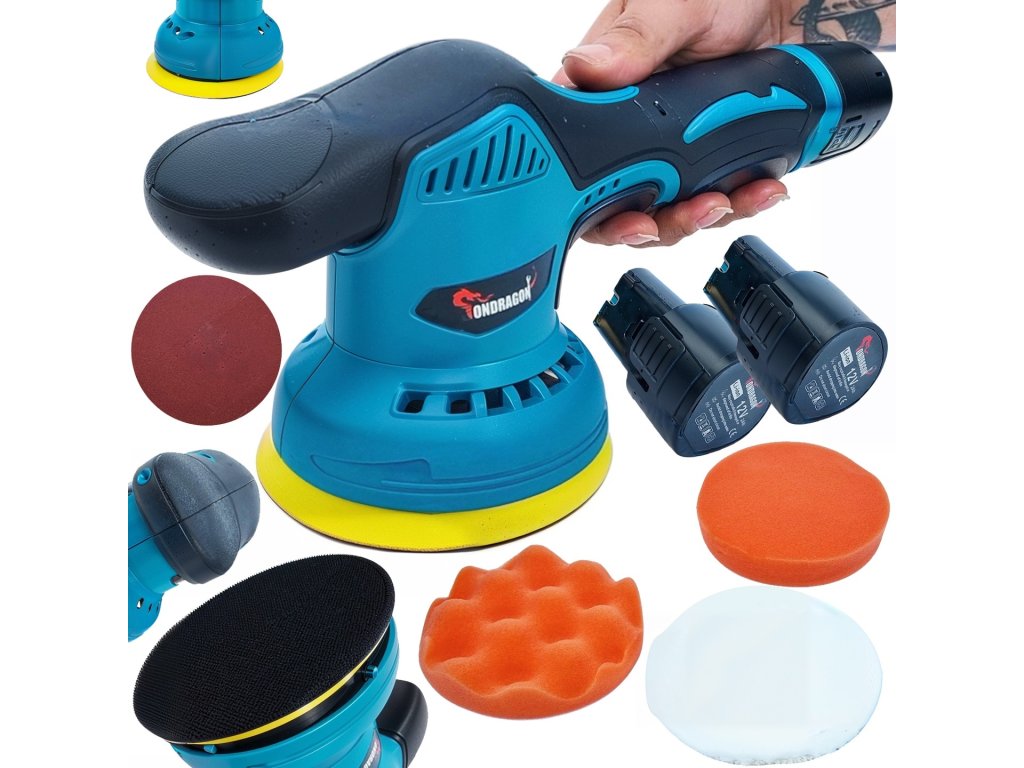 Pachetul include două baterii Li-Ion de 12V cu o capacitate de 2,0 Ah , care permit lucrul continuu - în timp ce o baterie se încarcă, cealaltă este în funcțiune. Polizorul folosește tehnologia cu vibrații excentrice , care asigură absorbția profundă a cerii în vopseaua vehiculului și minimizează riscul de deteriorare a suprafeței.