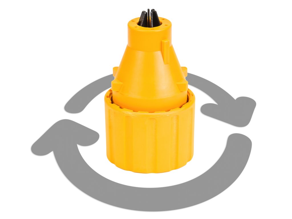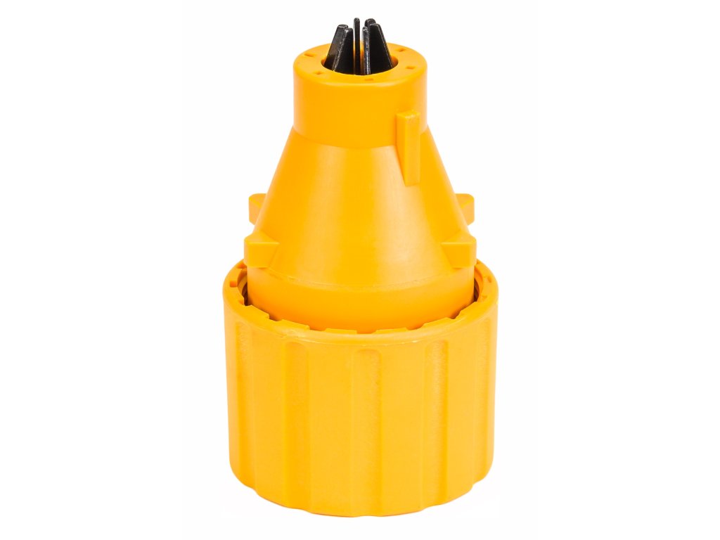 Adaptorul pentru setarea poziției burghiului în raport cu ghidurile precis conturate pe deschiderile de ascuțire dispune de un sistem inteligent de prindere rotativ "clema", care se strânge și se eliberează folosind același sistem ca la capetele mașinilor de găurit.