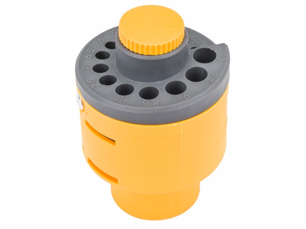Adaptorul pentru setarea burghiului în raport cu ghidajele profilate precis pentru orificiile de șlefuit asigură o ascuțire perfectă și eficientă.