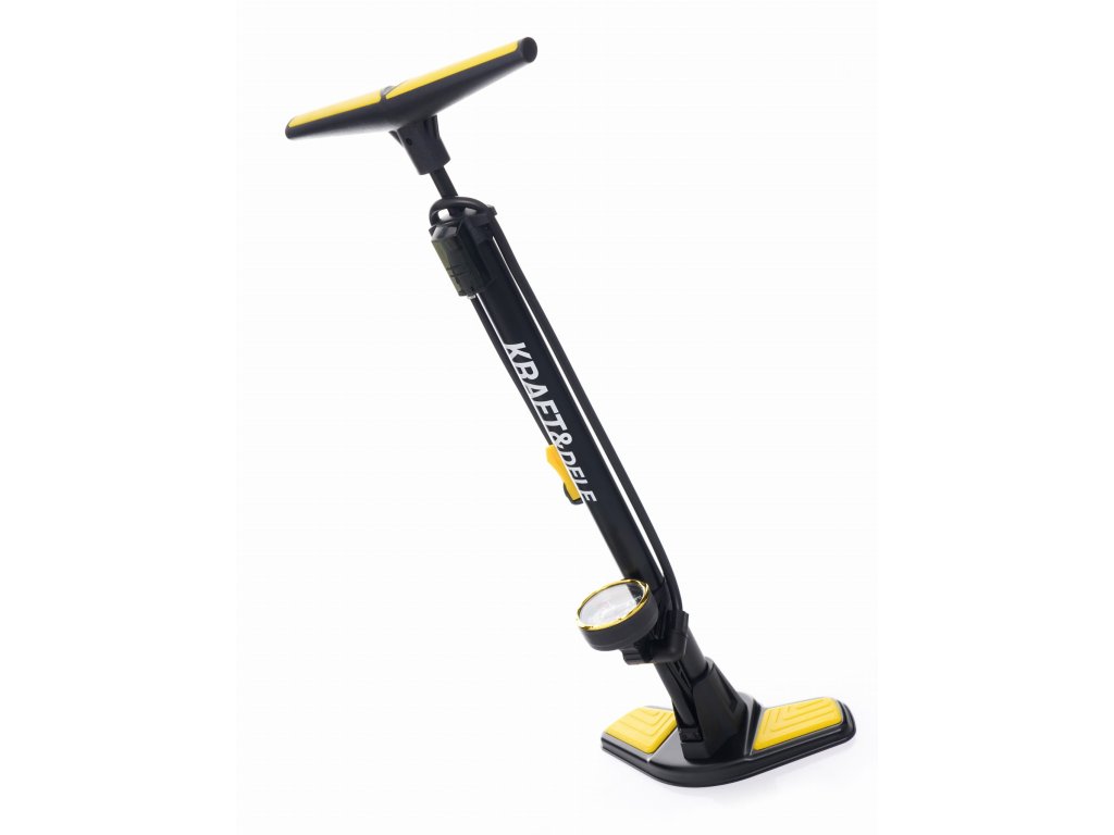 Pompă de coloană pentru biciclete, acționată manual, cu manometru, de la marca Kraft&Dele, model , destinată pentru umflarea rapidă sau completarea pneurilor bicicletei. Capul dublu este compatibil cu toate tipurile de ventile AV (Schrader), DV (Dunlop) și FV (Presta). Pompă de coloană asigură stabilitate și confort în timpul pomparii.