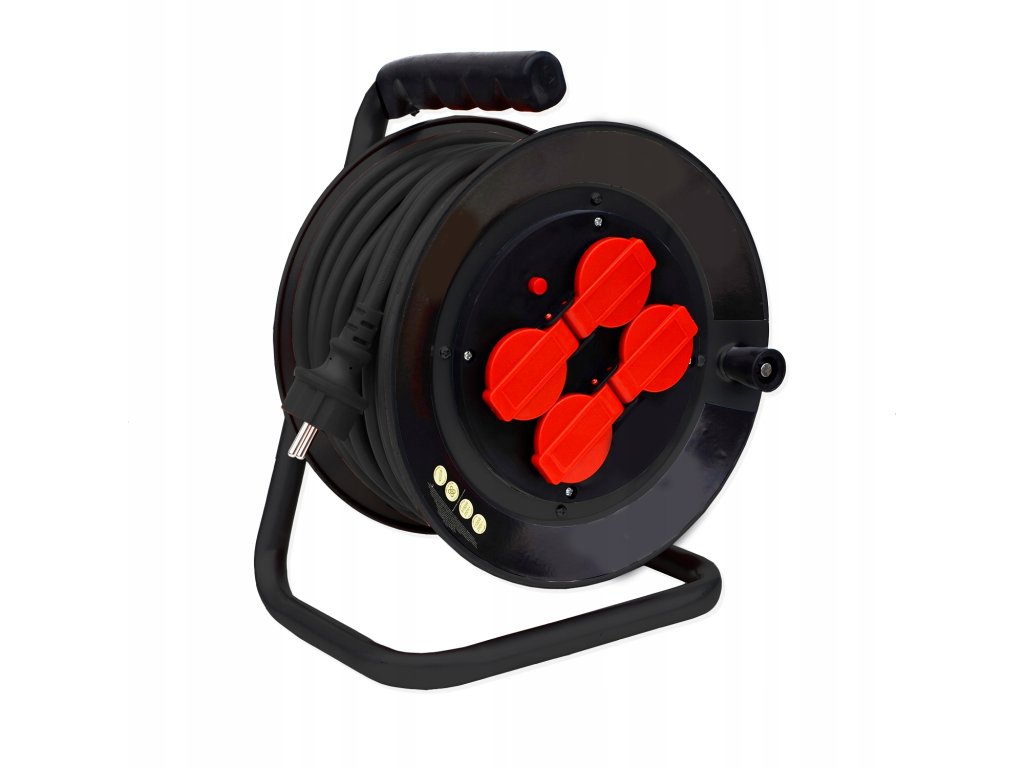 Cablu este echipat cu un înveliș din PVC rezistent, care protejează împotriva deteriorărilor mecanice, intemperiilor și substanțelor chimice. Tamburul din plastic cu cadru metalic asigură stabilitatea și durabilitatea îndelungată, în timp ce mânerul practic facilitează transportul. Cablu are, de asemenea, un întrerupător integrat și împământare, sporind siguranța în utilizare.
