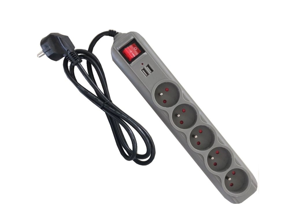 Prelungitor cu prize USB 1,5 m - 5 prize și 2 porturi USB - Model KD4033