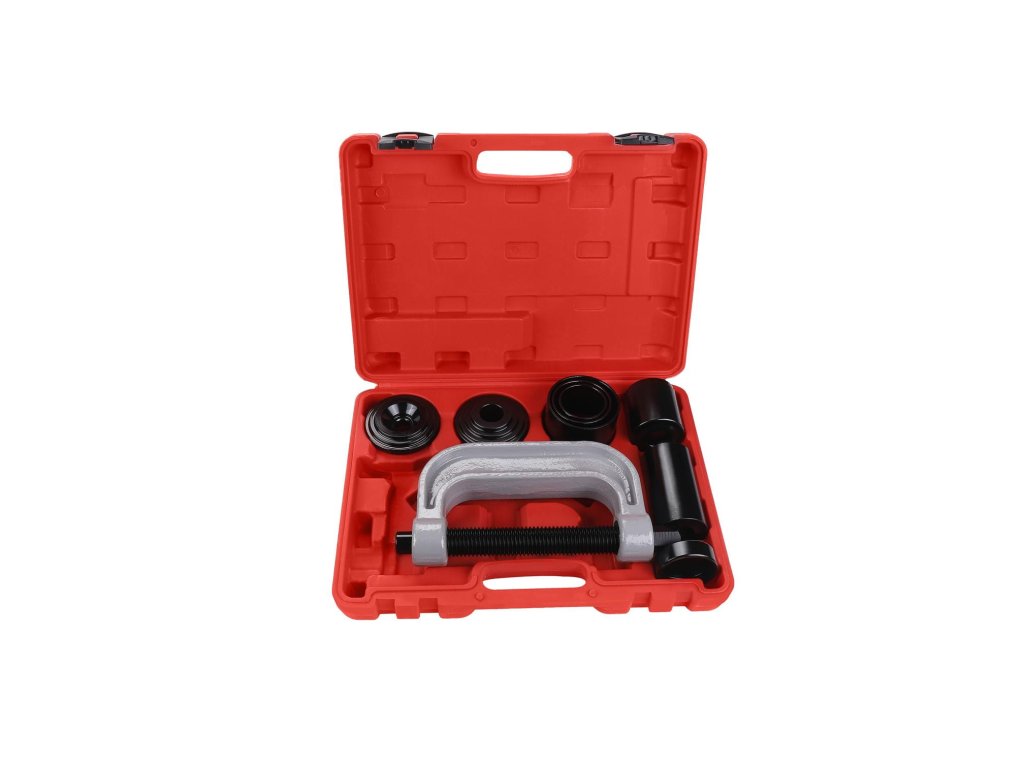 Presi profesională cu șurub pentru pini și bucșe, marca Kraft&Dele, model KD12508. Setul conține 9 piese. Se potrivește foarte bine atât într-un atelier profesional, cât și într-un atelier de acasă.