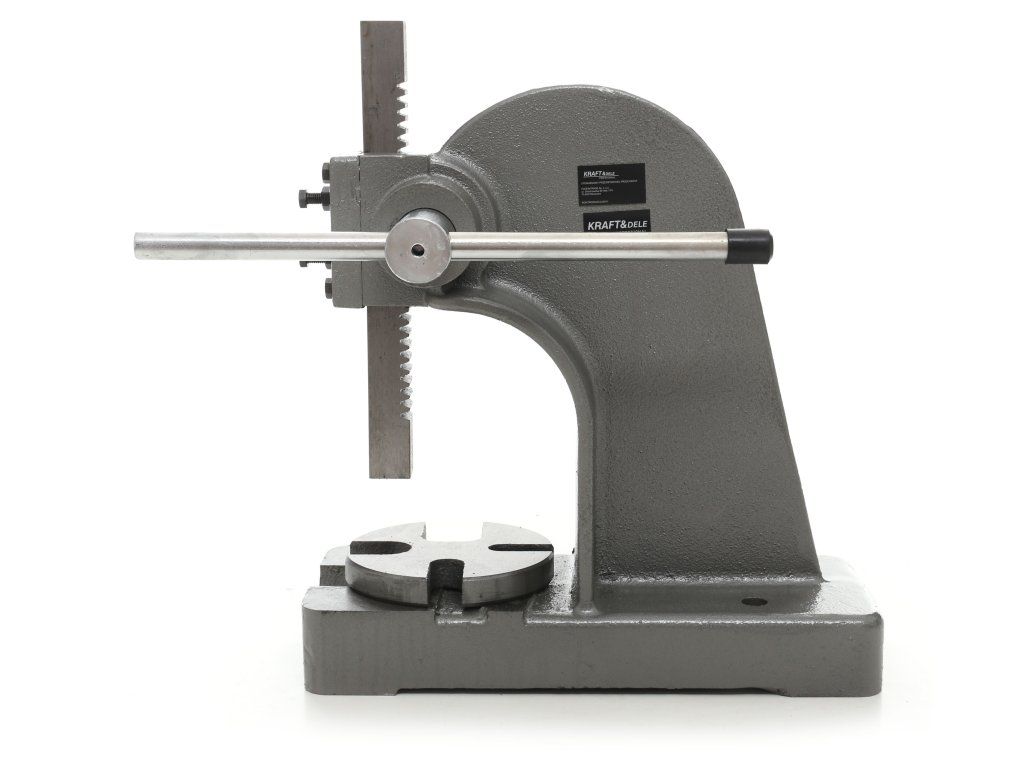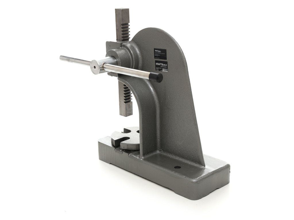 Presă hidraulică manuală cu marca KD10342 de la KRAFT&DELE. Datorită cilindrului cu presiune de 1 tonă și a construcției solide din oțel structural, poate gestiona chiar și cele mai solicitante lucrări din atelier.