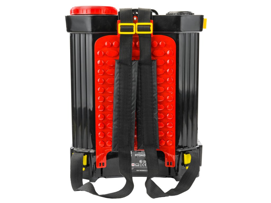 - Partea profilată a spatelui pentru ventilare liberă și purtare confortabilă a rezervorului greu