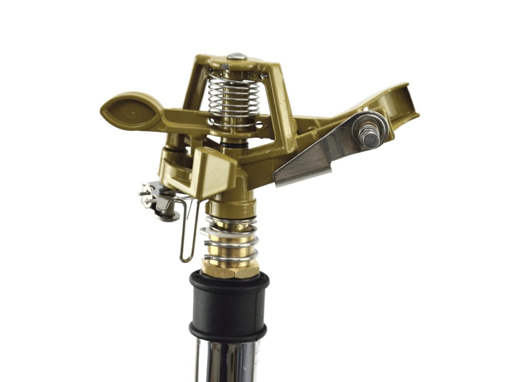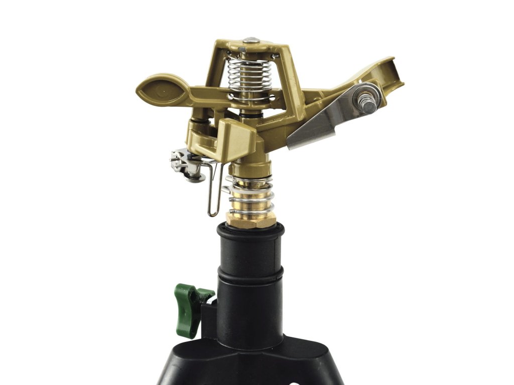 Pulverizator robust realizat din aluminiu, oțel și alamă. Acest pulverizator este montat pe un suport cu înălțime reglabilă de la 57 cm până la 90 cm. Diametrul maxim de udare ajunge până la 24 de metri, în funcție de presiunea apei. Suportul din aluminiu este prevăzut cu țepușe profilate, care asigură stabilitatea pulverizatorului pe terenuri moi și denivelate.